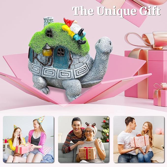 • Garden Gift Idea: It features an adorable turtle back with lawn carrying gnome. A unique gift for family and friends, expressing your care and best wishes for any occasion. Its endearing design and eco-friendly illumination make it ideal for birthdays, housewarmings, or celebrations. Brighten up loved ones' outdoor areas with beauty and cheer. Perfect for holidays, father's day, mother's day, thanksgiving, christmas, anniversaries.