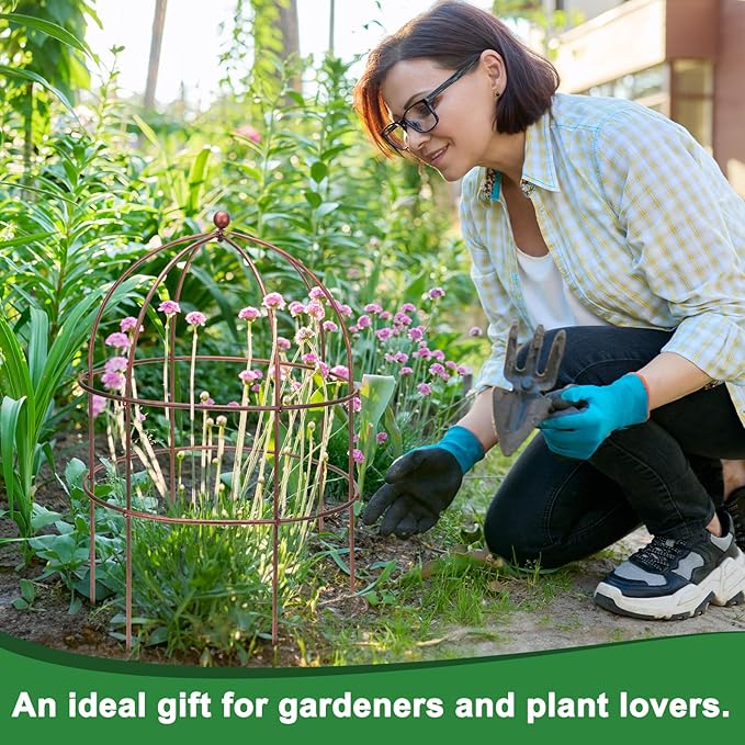 • Elegant Design: A beautiful birdcage design enhances your garden's aesthetic while functioning as a sturdy grow-through support that keeps plants contained and upright. This sculptural plant support maintains the shape of large perennials, complementing the elegance of your flower gardens