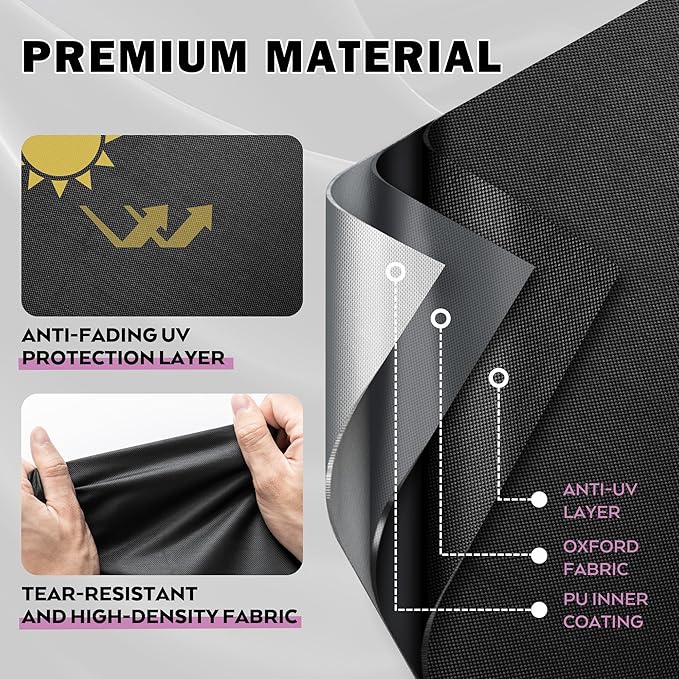 • ANTI-TEAR MATERIAL – Designed to be long lasting, this grill cover is made of high-density 420D oxford fabric with reinforced stitching, which is lightweight but durable materials that can withstand harsh weather conditions and resist tearing, fading, and other types of damage