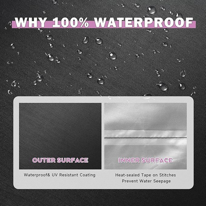 • WATERPROOF & ANTI-UV – Waterproof outer coating and heat-sealed tape on stitches prevent water seepage, making the cover completely waterproof to protect your grill. Inner PU coating layer protects your outdoor griddle from damage caused by prolonged sun exposure