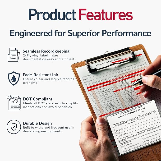 • DOT & FMCSA Compliance: Meets annual vehicle inspection requirements under 49 CFR Section 396, helping you stay compliant and avoid fines.