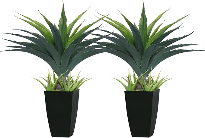 Artificial Spiked Agave Plant 2.5ft, 30 Inch Tall Fake Aloe Vera Plants in Black Pot, Fake Floor Plant Indoor Outdoor for Front Porch Patio Home Office Door Step Decor 2PCS