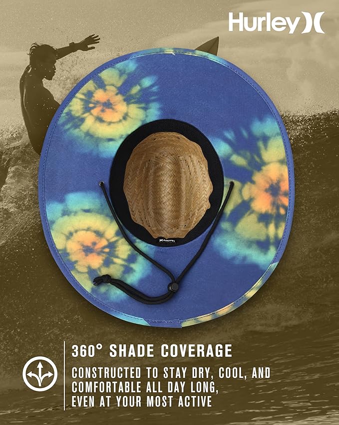 • SUN PROTECTION : Designed with a wide brim, this Hurley straw hat offers you ultimate sun protection. Keep your face, neck, and shoulders shaded from harmful UV rays during long days at the beach, on the boat, or by the pool. Whether you're wearing it for lifeguarding, fishing, or just soaking up some sun, this is the beach hat for men that ensures you stay cool, comfortable, and protected.