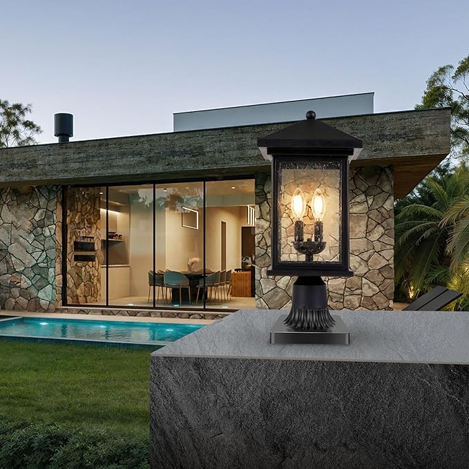 • ✔ Classic Design with Modern Appeal This large outdoor post lantern features a traditional design with clean lines and elegant detailing. The matte black frame paired with clear glass ensures it complements a variety of exterior styles, from rustic to contemporary.