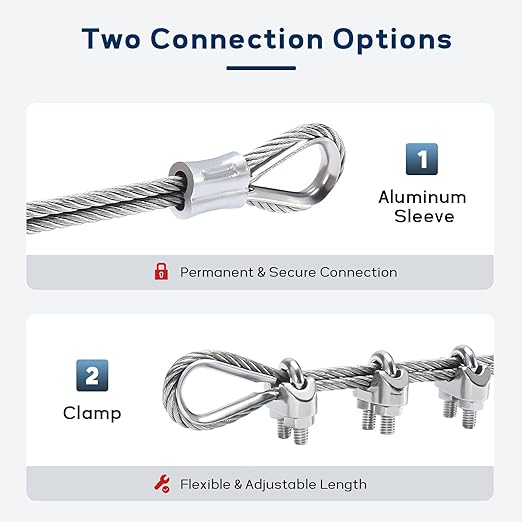 • Complete Kit for Quick Installation: Includes a sharp yellow cable cutter, 12 wire rope clips, 12 thimbles, 24 crimping sleeves, and 1 socket wrench. This kit provides all the essential tools needed for a quick and easy setup, saving you time and effort