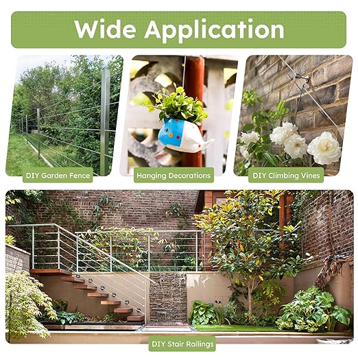 • Perfect for Garden and Decorative Use: Ideal for seasonal plant supports, garden fencing, and lightweight decorations, this wire rope kit offers a practical solution while adding subtle elegance to your outdoor and indoor spaces