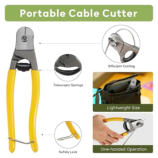 • Complete Kit for Easy Installation: Includes 24 M3 aluminum sleeves, 12 M3 thimbles, and 1 professional yellow cable cutter. These tools ensure secure and professional connections, simplifying the wire rope installation process