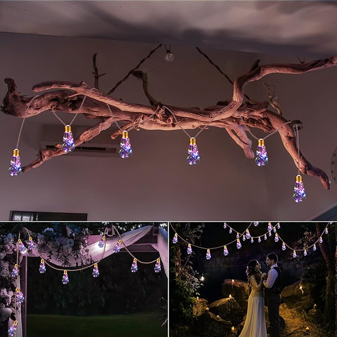 • IP65 Waterproof & Shatterproof: The led solar string lights are suitable for indoor & outdoor. Fully weatherproof, no matter what weather, it still gives soft, romantic light. The outdoor bulbs string lights are made of tough and shatterproof plastic. More shatterproof and safe to use