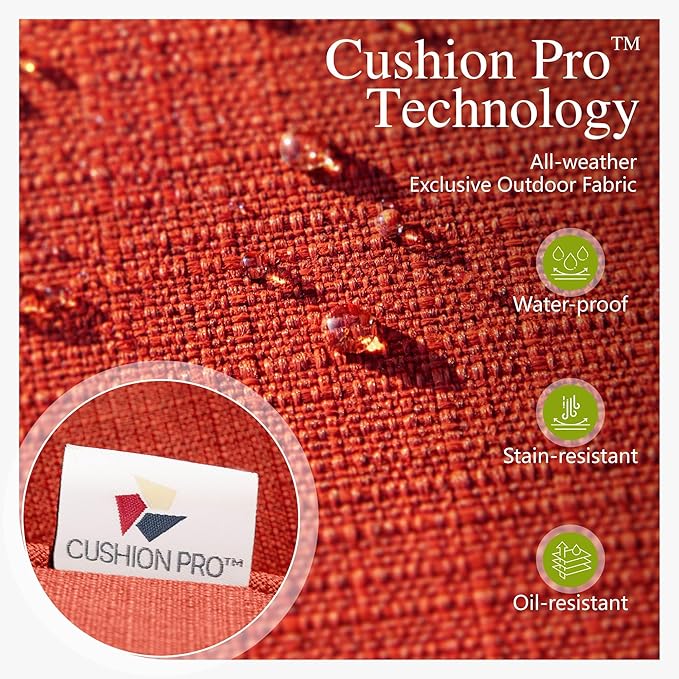 • Weather-Resistant Cushion Pro Fabric : Sophia & William patio sofa cushions are crafted with exclusive Cushion Pro outdoor fabric, designed specifically for outdoor use. This fabric offers superior water resistance, oil-repellent, and stain-resistant properties, making it easy to clean with just a sponge and cleaning spray. The velcro design ensures the cushions stay securely in place, preventing slipping or sliding for a comfortable, hassle-free seating experience.