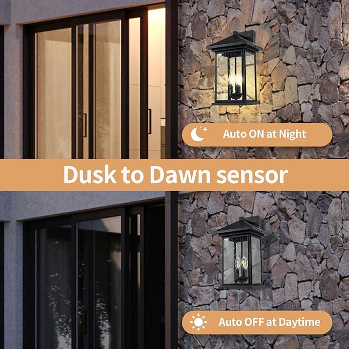 • ⬤【Built-in Dusk-to-Dawn Sensor】Automatically turns on at dusk and off at dawn based on surrounding light conditions. Enjoy hands-free, energy-efficient outdoor lighting.
