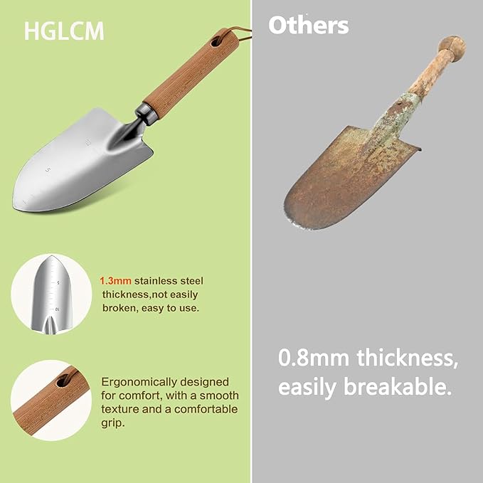 • Sturdy and Stainless Steel Garden Set: Made of Stainless Steel, this stainless steel gardening tools is durable and rust-proof. Moreover, with stable material like this, these gardening tools are hardly deformed