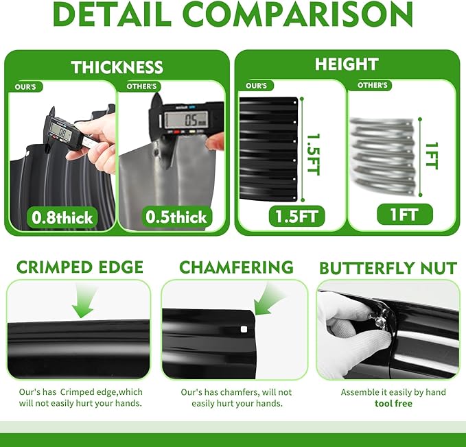 • Sleek Design: The Black color and clean lines of the galvanized raised bed add an aesthetic appeal to your garden or outdoor area. It blends well with the surroundings, adding a touch of elegance to your plantings