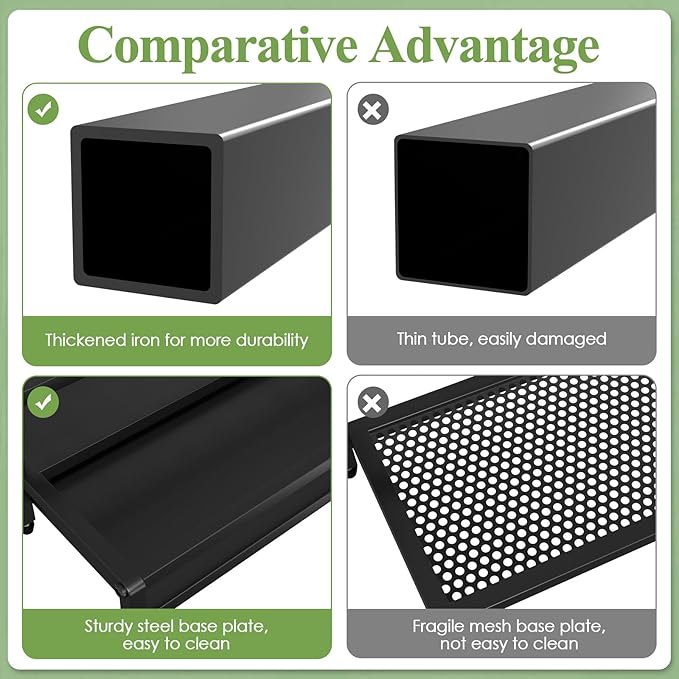 • Garden Tool Organizer: This gardern tool organizer for garage measures 27.6"(L) x 21.65"(W) x 27.6"(H). Gardern tool rack is made of durable coated steel, stable and sturdy. It is rust-resistant and corrosion-resistant, robust enough to endure use both indoor and outdoor.