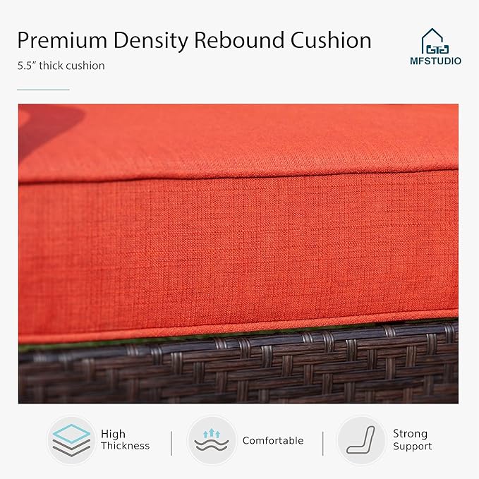 • Sturdy Structure: Our outdoor patio furniture features with thicken steel frame with E-coating for excellent performance on anti rust and long-lasting durability. The steel slat cross bar on the bottom adds stability and supports up to 350lbs for each single sofa chair, ensuring a luxurious outdoor experience for you