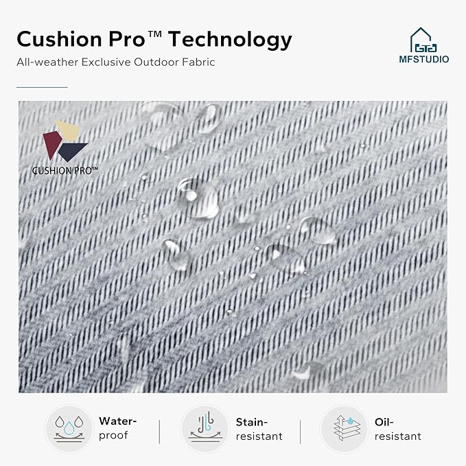 • Sturdy Structure: Our outdoor patio furniture features with thicken steel frame with E-coating for excellent performance on anti rust and long-lasting durability. The steel slat cross bar on the bottom adds stability and supports up to 350lbs for each single sofa chair, ensuring a luxurious outdoor experience for you