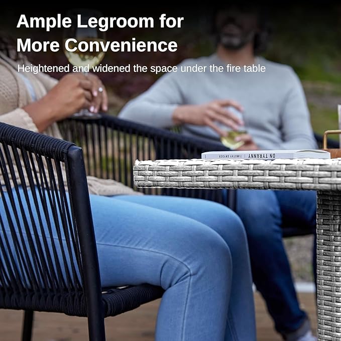 • Ample Legroom for Added Convenience: Our designer especially heightened and widened the space under the fire table, so that there is enough legroom when sitting next to it, which is more convenient than other 44'' fire tables on the market. As tabletop is made of one piece of tempered seamless glass, making it easy to clean