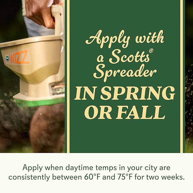 • Apply using a Scotts spreader and lightly water daily for two weeks; after application, toss the recyclable bag in your curbside recycling bin where available