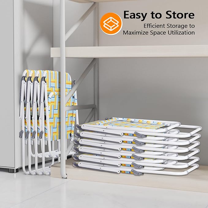 • STABLE CONSTRUCTION:Heavy duty metal pipes add strength and durability to the folding lawn chairs. Anti-slip pads are used to protect the floor and prevent slip on the poolside