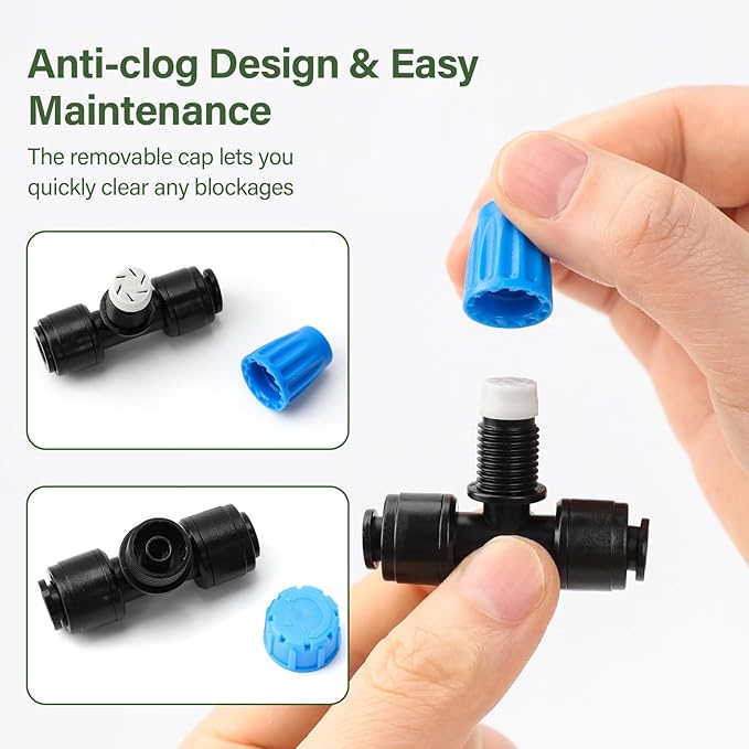 • 🌱 DIY-friendly irrigation system for garden – Quick-connect design and flexible tubing make setup easy in just 5 minutes. The drippers are twist-open for cleaning, preventing clogs and extending the life of your drip system.