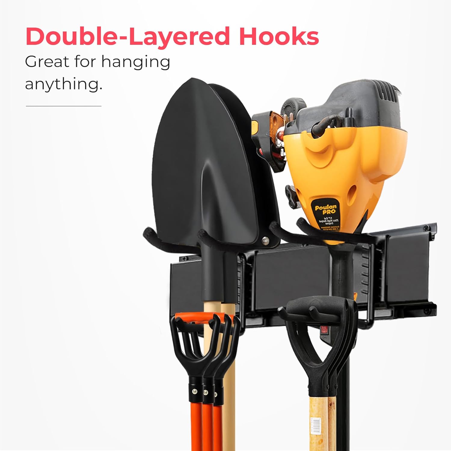 • Built to Handle Heavy Loads - each 16.5-inch utility shelf supports up to 120 lbs, while the four adjustable hooks hold up to 50 lbs each. Engineered for strength and long-term durability, this system is ideal for decluttering heavy tools, shovels, power equipment, and more
