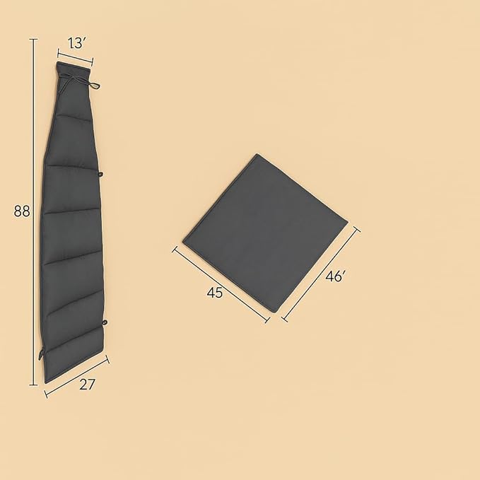 • ⭐️ UPDATE YOUR OLD CUSHION AND UMBRELLA: Cushion is 88 inches long (or 79 inches long with attached headrest pillow folded over) x 27 inches wide x 2 inches thick and weighs 2.4 pounds; Umbrella is 44.5" long x 45.5" wide and weighs 0.6 pounds (PLEASE NOTE: Umbrella only fits 4-Spoke Umbrella Attachment)