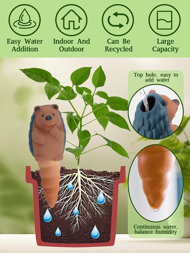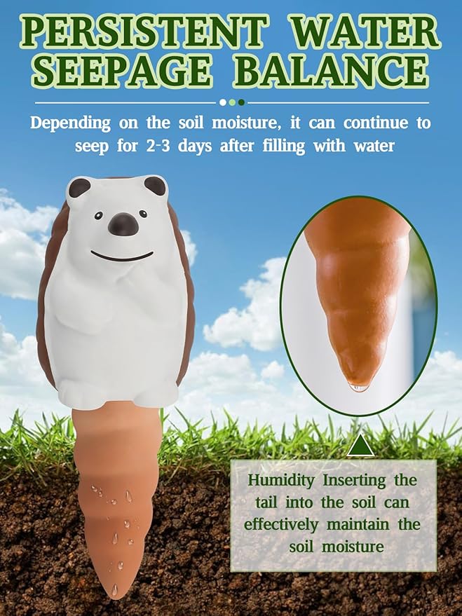• 【Unique Shape】Package includes 4 Hedgehog-shaped watering spikes, made of red loam, which look the most lively and decorative in plant pots. Add a touch of enchantment to your garden.