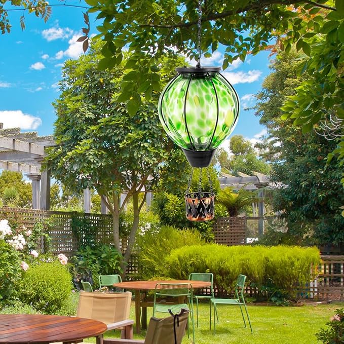 • Serve: Providing satisfying experience is our top priority;The product packaging includes 1 hot air balloon solar ligts.If you have any questions about the Green solar hot air balloon lantern with flame,please feel free to find us at any time