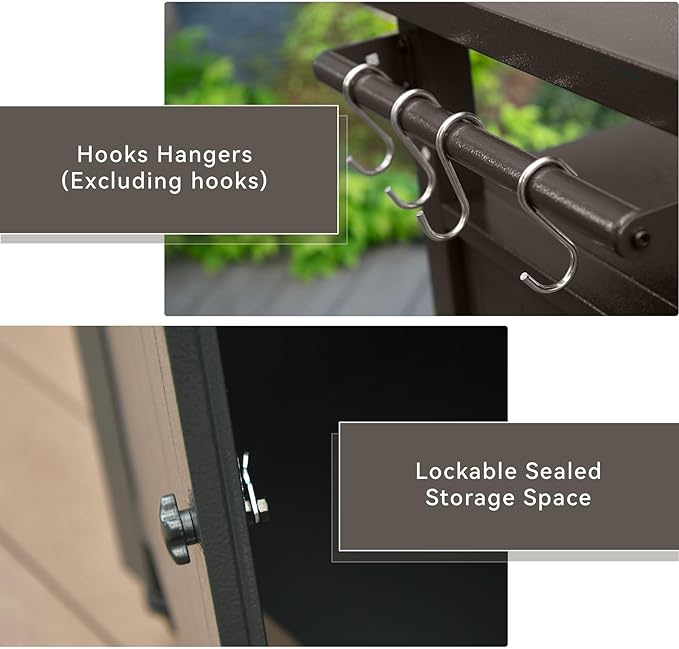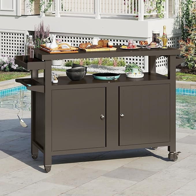 • Ample Storage Space - the outdoor grill prep cabinet table is designed with three-tie of the griddle stand which provide plenty of storage space. The open storage area offers 26 gallons, perfect for storing grilling tools and accessories. The enclosed cabinet provides 57 gallons of storage capacity, allowing for even more room for miscellaneous items