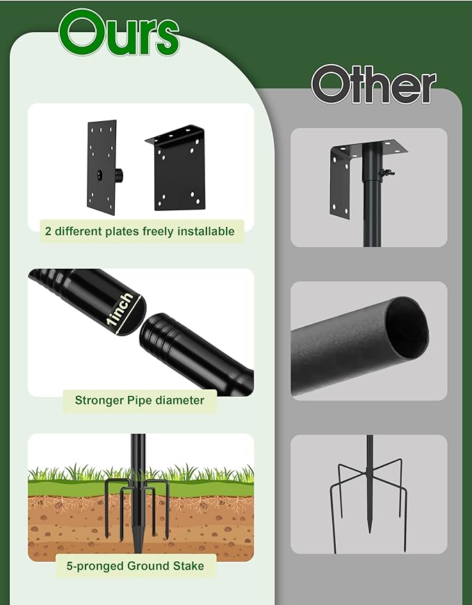 • 3-in-1 Bird house pole: This bird house pole offers three mounting options, allowing you to securely attach a birdhouse or feeder to the bottom or back. The included attachment plate ensures stable installation and can also be used to fix the pole to buildings or wooden fences