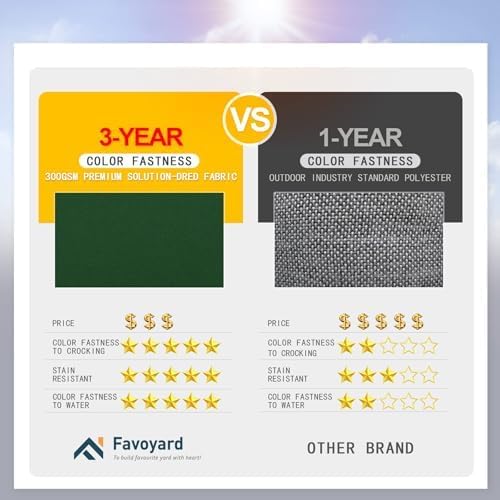 • 3-year Color Fastness - Our patio chair cushions adopt 300GSM High Density polyester fabric, thanks to the superb coloring technology, we proudly say the fading resistant is 20 times that of ordinary products, Favoyard outdoor seat cushion for patio furniture is a perfect decor in garden, patio, beach and etc.
