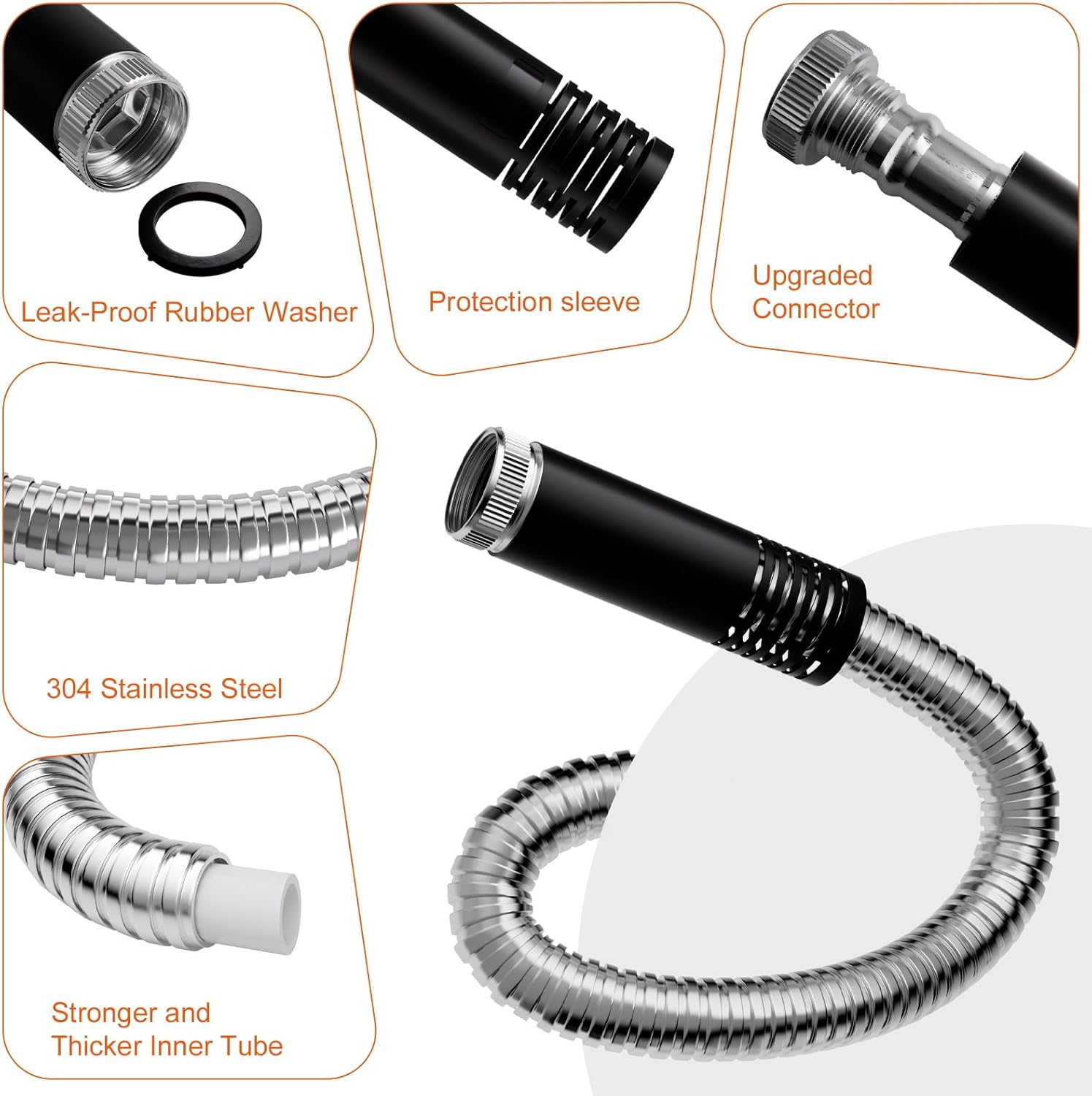 • 【Ultra-durable Stainless Steel】Made of 304 stainless steel, this hose is crush-proof, UV-resistant, and will never break or leak, outlasting rubber/vinyl hoses by 5 times.