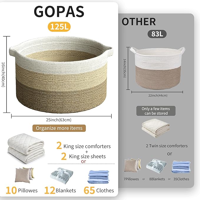 • Extra large Size Multi-Purpose Blankets Basket: 25" x 16", Our Large woven rope basket for storage originally designed as a Blanket storage basket but can be used for more. You can use it as large laundry basket, large storage basket, toy basket for kids, baby toy storage basket bin.Keep in the kids room, family room, or any room in the house that could use extra storage