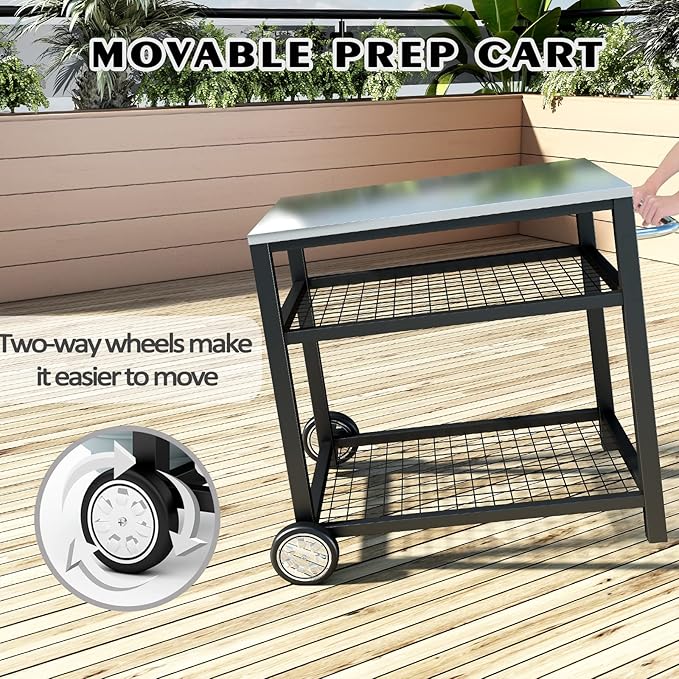 • 【Multifunction】The grill cart can be used indoors and outdoors. A dining cart table, working table cart, food prep table flattop.