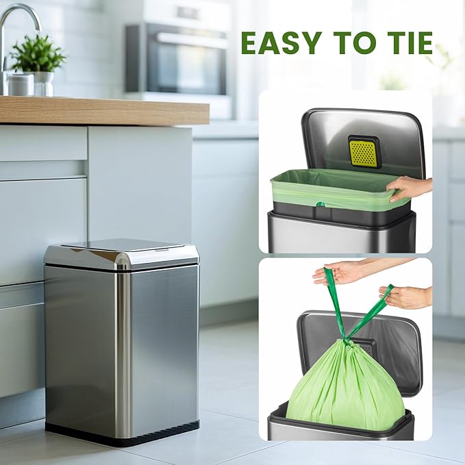 SUPERBIO 4 Gallon Compostable Drawstring Food Scrap Bags,15.1 Liter, 40 Count, 0.9 Mil,Heavy Duty Waste Bags, BPI, Seedling and OK compost INDUSTRIAL