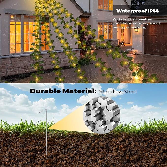 • EASY TO INSTALL: The outdoor string lights comes with 1pcs hook and 5 stakes for easy installation.