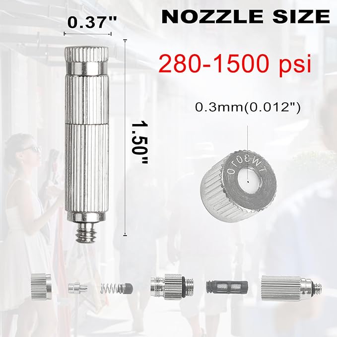 • 【Built to Last】 Crafted from premium nickel plated brass, these misting nozzles resist rust and corrosion. Integrated filters help prevent clogs, ensuring reliable performance all season long.