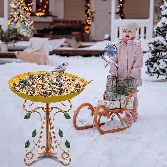 • 【Pedestal Metal Birdbath】 Made of high-quality metal with a rust-proof coating, this outdoor bird bath withstands rain, wind, and sun while remaining sturdy for long-term use.