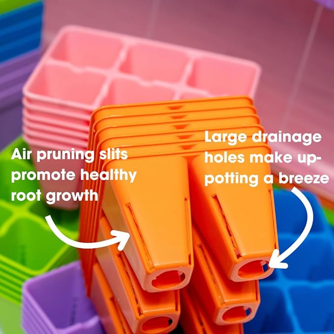 • Complete seed starting kit: 60 professional cell plug inserts, 5 heavy-duty trays, 90 transplant pots - everything needed to grow your entire garden from seed to transplant