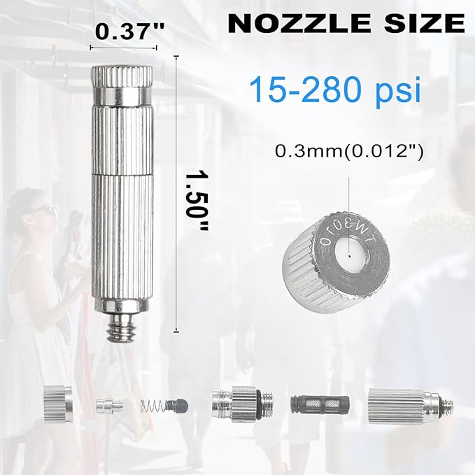 • 【Effective Cooling Performance】 Engineered to produce a fine, refreshing mist that can lower ambient temperatures by up to 20°C (68°F), this low-pressure system operates safely within 0-280 psi—ideal for hot summer days.
