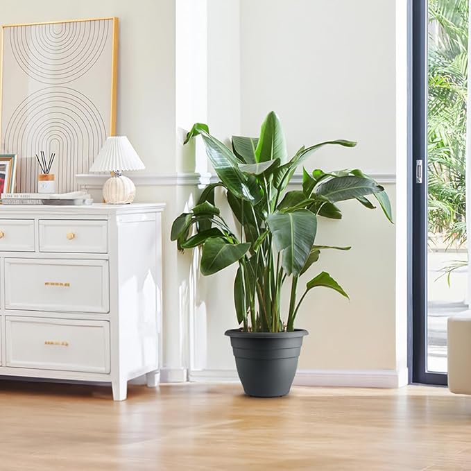12 Inch Plant Pots, Large Planters for Outdoor Plants, Plastic Flower Pots - Durable and Lightweight with Drainage Holes (3 Packs, Gray)
