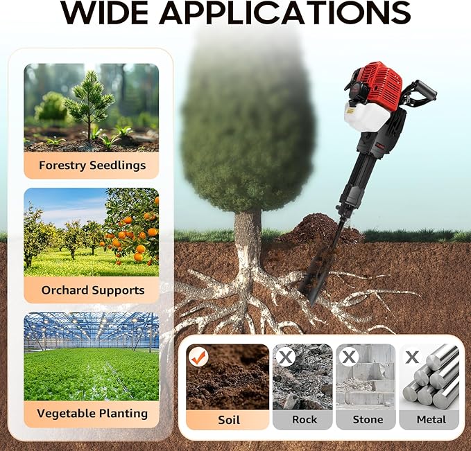 • 【Powerful Performance】 Featuring a 1900W 2-stroke engine, this Tree Root Remover offers high power and speed, reaching up to 6500 rpm, making tree root removal and soil excavation effortless and efficient.
