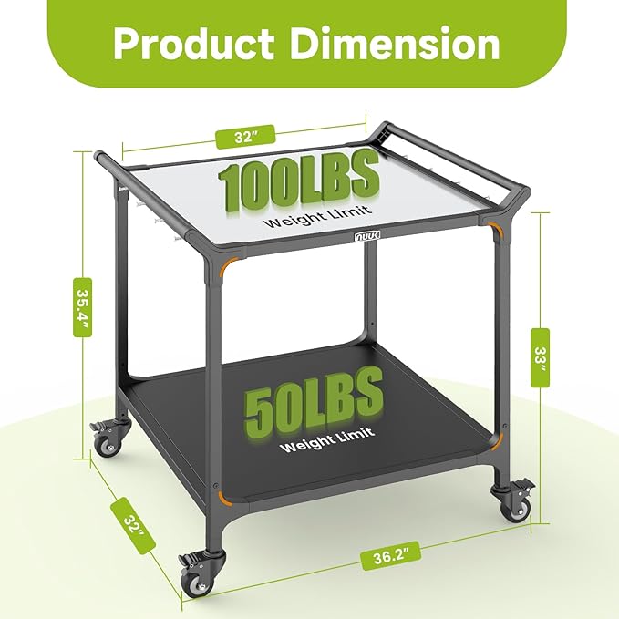 • Sturdy Structure: The grilling prep table is constructed with heavy duty steel tube frame structure, ensuring durability. The tabletop can withstand a weight of up to 100 pounds, while the second layer shelf can handle 50 pounds, which is more than enough to accommodate most BBQ griddle grill or pizza oven usage.