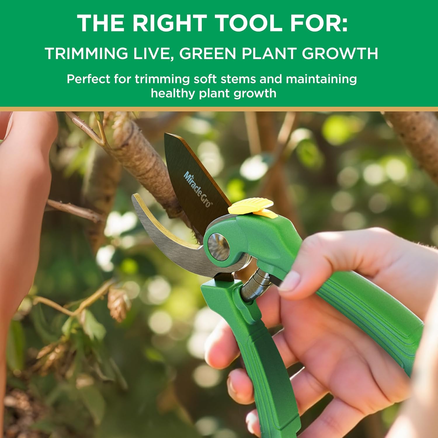 Miracle-Gro 8 in. Bypass Pruning Shears – 1/2 in. Cutting Capacity; Gardening Hand Pruner with Sharp Carbon Steel Blade and Non-Slip Grip – Lightweight Garden Tool for Live Plants and Soft Stems