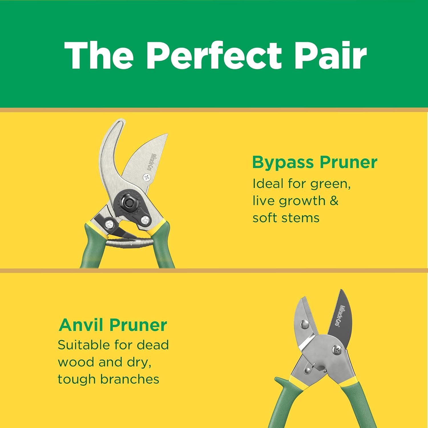 • Versatile 8" Anvil and Bypass Pruners: This set includes both an 8" Anvil Pruner, ideal for dead wood and tough branches, and an 8" Bypass Pruner, perfect for live growth and soft stems.
