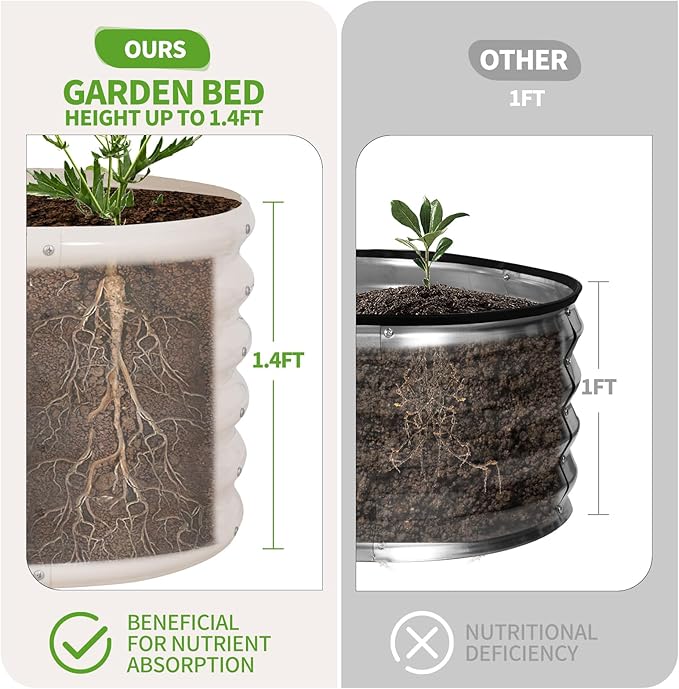 • 【Upgrade Quality & Structure 】The raised garden bed is made of thick galvanized metal with a surface spray coating, which is rust proof and anti-corrosion. Can be used for a long time. The oval design ensures uniform surface force and prevents deformation. More durable than other raised planter box, becoming a good helper for your garden