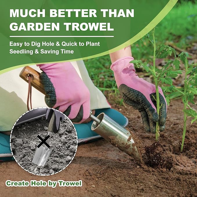 • 【Much Better Than Garden Trowel】A hand trowel makes the hole too wide and sometimes not deep enough, but this small bulb planter is perfect, just twist and turn once in the ground, and you will get an ideal depth hole to plant a bulb. Save a lot of digging time than regular garden shovels and make planting bulbs so much easier.