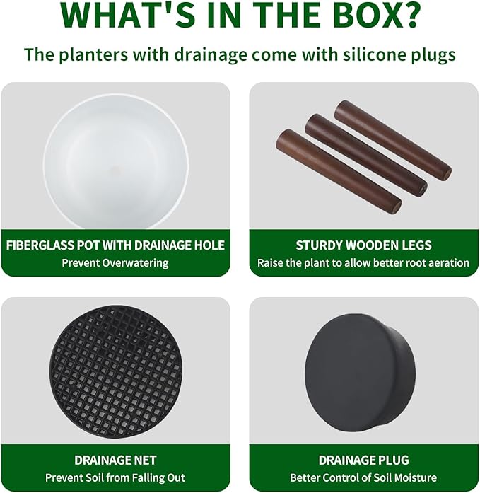 • High-Quality Material:Crafted from premium fiberglass, this 12-inch planter is lightweight, durable, and crack-resistant, ideal for both indoor and outdoor use.