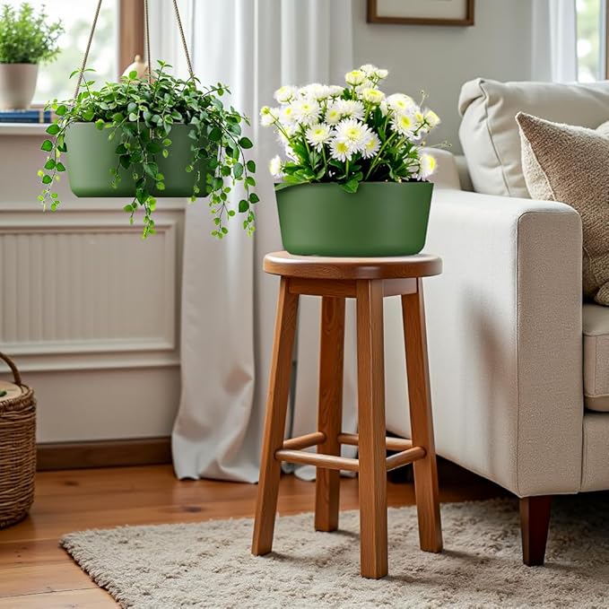 10.7 Inch Hanging Planter for Outdoor Indoor Plants,2 Pack Hanging Flower Pots with Drain Holes for Garden Home Decor Use (Dark Green)