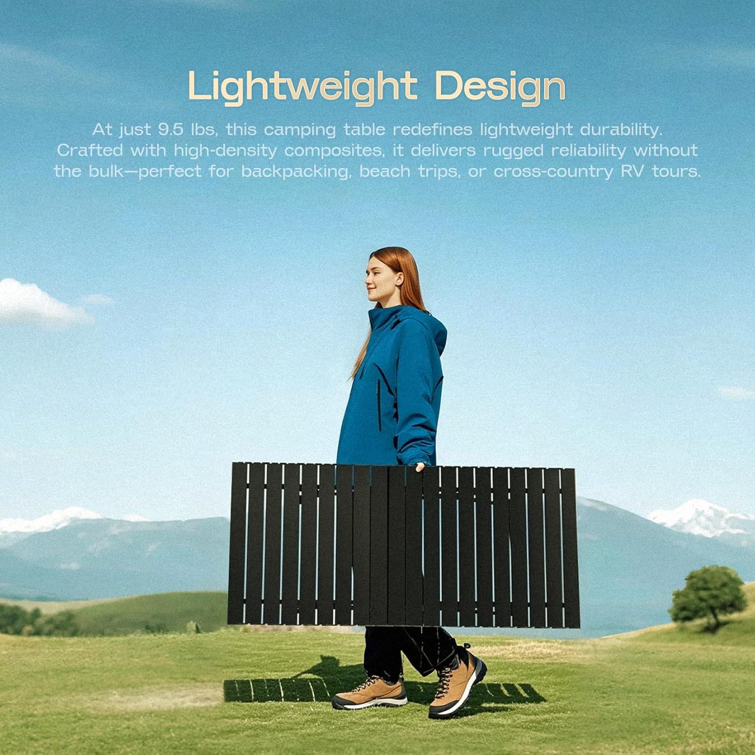 • [Multifunctional for Every Scenario] From camping cookouts to backyard parties , this lightweight camping table adapts to picnics, BBQ, fishing, garden, yard, beach, hiking, or indoor use. Fits 4-6 people with 47''x22'' workspace.