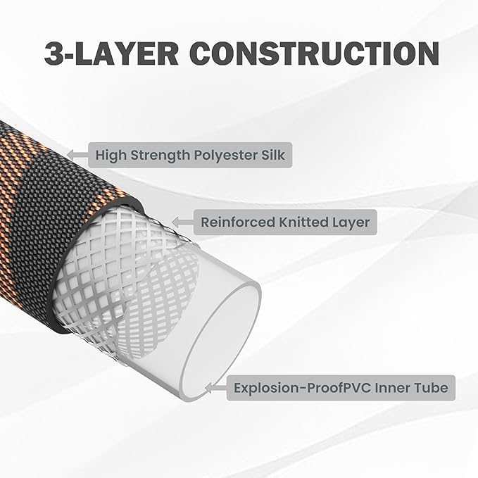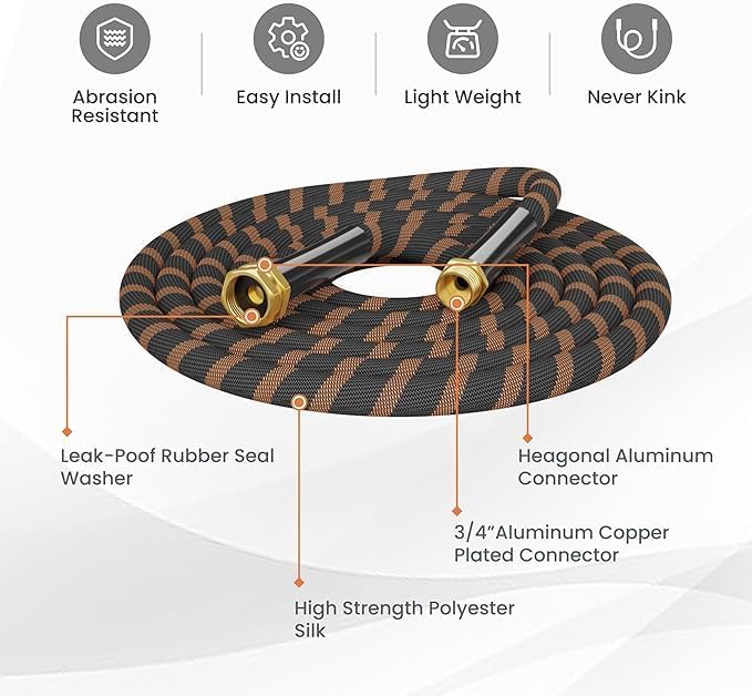 • Kink-Free: Our premium garden hose prevents kinks and tangles, ensuring uninterrupted water flow.